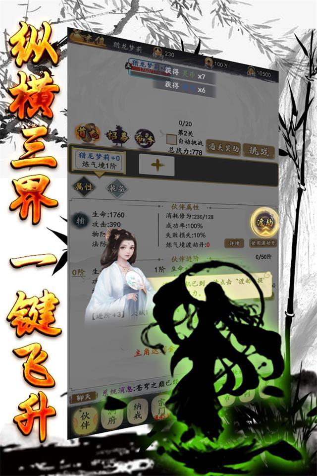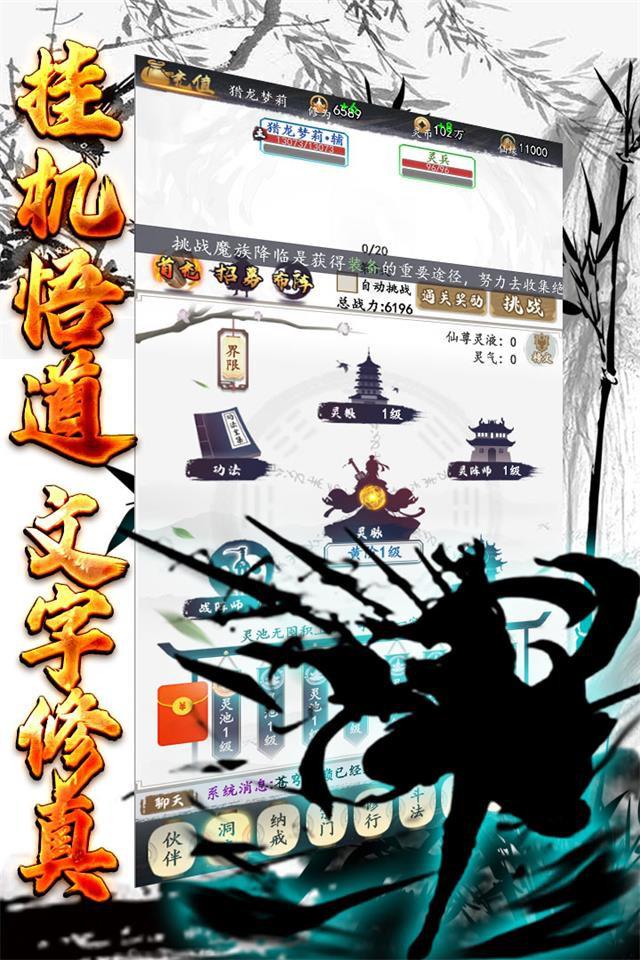 本游戏以东方玄幻为背景,轻松又有策略的文字放置类修真游戏。在修真之路上可以招募不同职业的伙伴,并提升他们的修为境界,组建属于自己的修真队伍,利用伙伴职业克制、伙伴技能搭配等策略设定,来尝试多种伙伴阵容去挑战各种各样的关卡和副本。只需要简单的放置挂机,凡人之身亦可修成大道,游戏完美还原一个奇异的修真世界,在浩瀚星空,无尽苍穹,斩妖除魔,炼丹炼器,构建千万修真小说迷的“修真梦”。