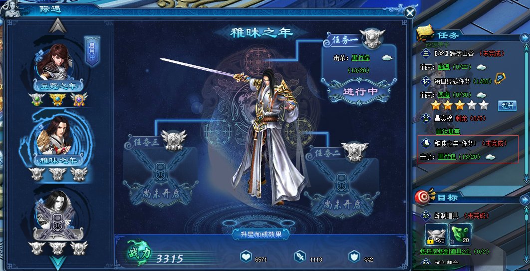 际遇系统的设计理念,通过玩家角色外观成长,通过幼、少、青阶段遭遇标志性事件,以任务的形式包装,增强了游戏代入感。