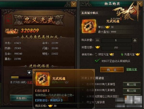 “光武残魂”是进阶必不可少的物品,每次点击进阶都会随之消耗,想要获取的途径有很多,37《轩辕剑之天之痕》的玩家可以选择击杀野外和副本BOSS、从其他玩家摊位上购买以及寻宝。前者依靠BOSS掉落有一定的几率,但在获取的途中还能打多点升级经验,何乐而不为呢?