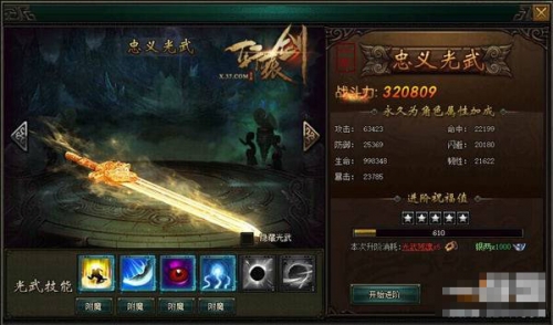 在《轩辕剑之天之痕》中,如果想要获得更强大的属性加成,玩家可在一阶“忠义光武”的基础上进行进阶,系统界面右侧显示为光武所带来的7种属性,每一次点击进阶都会随机获得祝福值,当进阶成功时则可以点亮一颗星,而属性数据也会随之增加,当所有星星全部点亮即可将光武升级到下一阶,每一阶的光武外形均不一样。