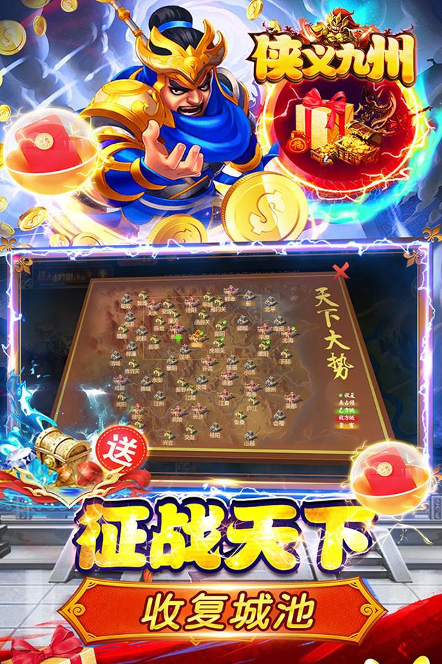 《侠义九州》是一款三国 国战策略手游,玩家分属不同势力建设自己的领地,同时可进行领地结盟,争夺一方诸侯,逐鹿全服帝王大位。忠于古典,真实演绎三国缤纷战史,无缝大地图真实场景,神州大地任君驰骋;多样养成,白卡武将轻松养成三国战神;成就帝王万人膜拜,跨服冠军全区敬仰;数十兵种相克相生,上千名将任意组合,排兵布阵隐玄机;突破传统策略游戏套路,奇袭掠夺,围城打援出奇招,出奇方能制胜。
