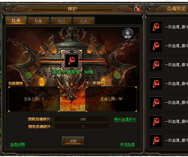 低等级血魂可以通过消耗血魂碎片进行升级,成为更高一级的血魂,带来更多的生命值加成。拥有高等级血魂之后,一向脆皮的法师也能站撸BOSS啦!