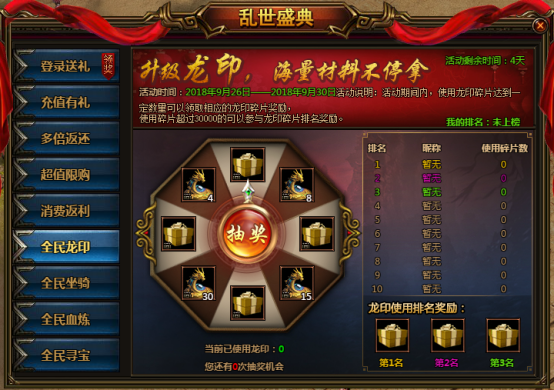 2、活动说明:活动期间,使用龙印碎片达到一定数量可以领取相应的奖励,使用碎片超过30000的可以参与龙印碎片排名奖励,活动零点结束。