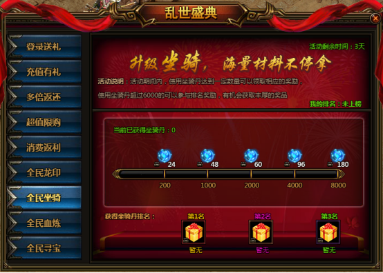 2、活动说明:活动期间,使用坐骑碎片达到一定数量可以领取相应的奖励,使用碎片超过6000的可以参与坐骑碎片排名奖励,活动零点结束。