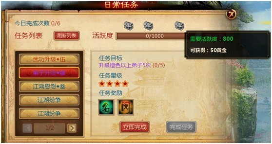 玩家每日最多可完成15个任务,达到一定的活跃度即可领取对应活跃度宝箱。