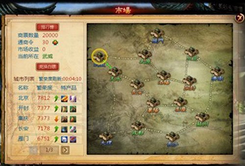 5)排行榜:记录跑商获得银两最多的前100名玩家,每天跑商获利最多的前10名玩家可额外获得银两。