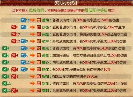 注:品级代表的是可组装配件的等级,十级品级最高可组装10级配件,同时也可激活10级特技。