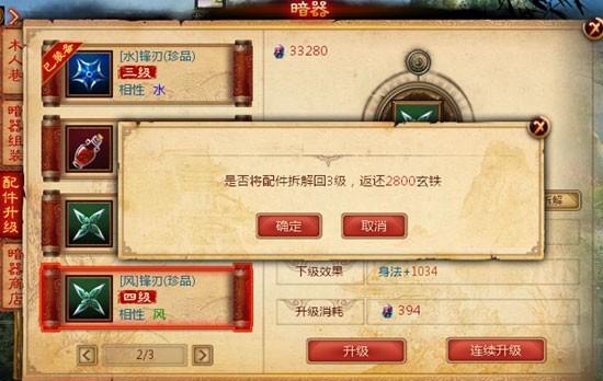 3) 插槽所消耗的玄铁或黄金按照暗器等级依次递增;