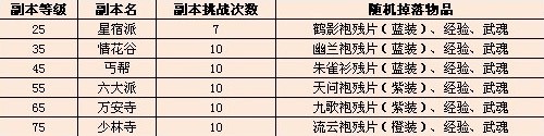 当玩家达到25级后副本功能开启,此后每10级开启指定副本一个。