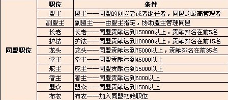 同盟成员通过捐献银两、升级同盟徽章、默认捐献提升同盟贡献,进而决定其同盟职位和每日福利;同盟贡献,会一直累计,不会清除,当同盟成员退出或者解散贡献也不会清零。