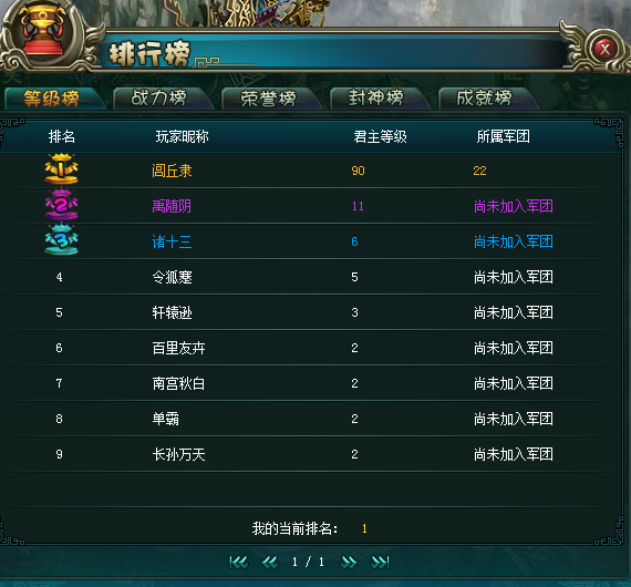 根据玩家战力和游戏进度来进行排名。共分为(等级榜、战力榜、荣誉榜、封神榜、成就帮)