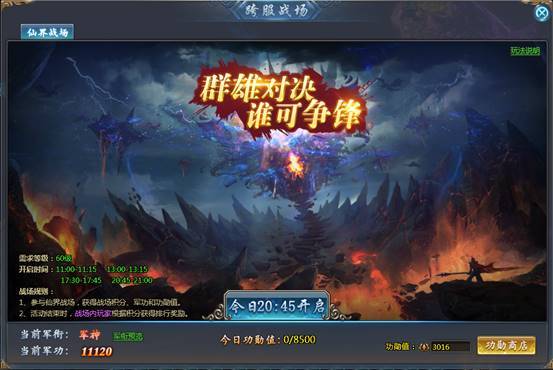 战场每天分时段开启,单场持续时间为15分钟,邻近三个服的玩家可进入同一战场进行PVP。