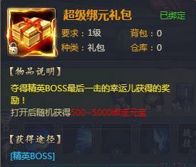 对BOSS造成最后一击的玩家可获得丰厚的奖励,有机会开出500-5000绑定元宝啊!