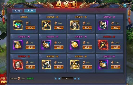 想要更快速地获取高阶数的天界装备可以去“藏宝阁”抽取