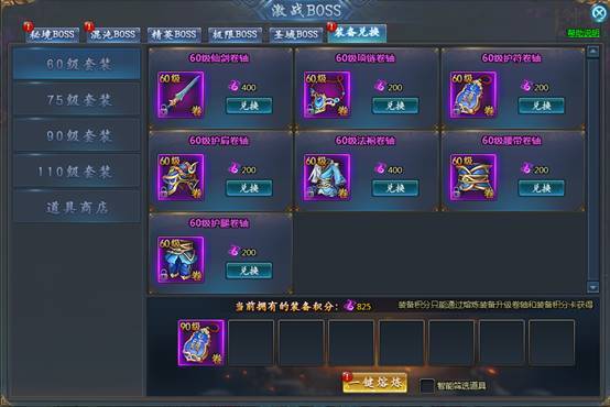 如果获取了重复的装备可以在激战BOSS-装备兑换页签进行兑换成装备积分,然后再选择自己缺少的部位进行兑换。