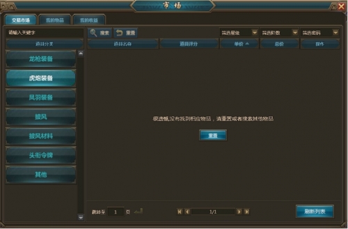 1、在“交易市场”界面可以查看当前市场内所有上架的物品,玩家可通过筛选来寻找自己所需物品进行购买。