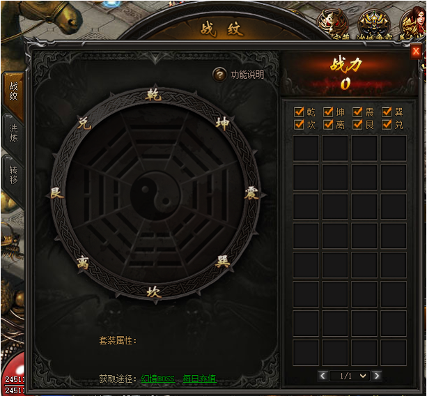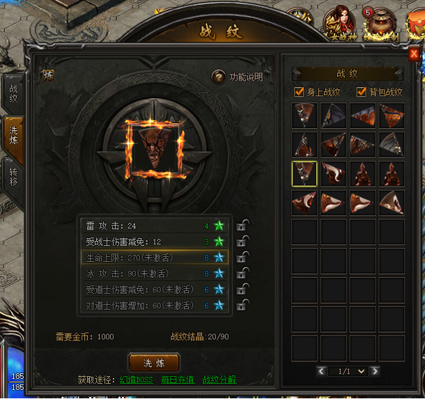 玩家可以通过击杀幻境BOSS、每日充值获得战纹碎片和战纹结晶。
