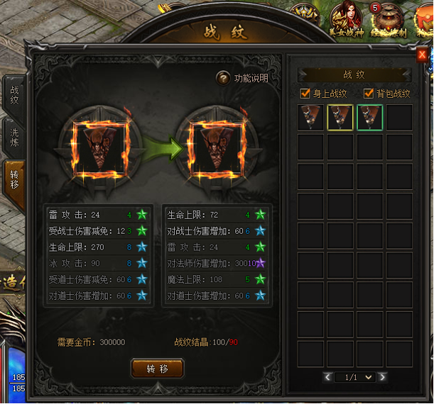 相同部位的战纹碎片可以通过转移功能,将属性互换,