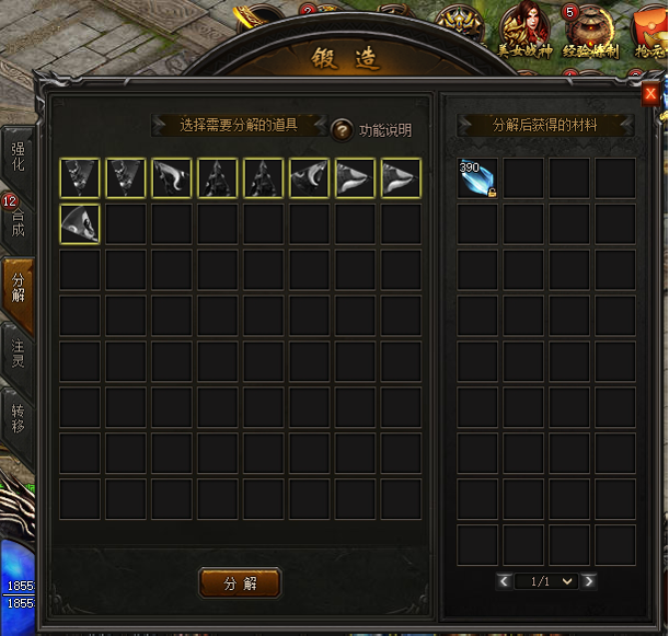 多余的战纹碎片可以通过锻造分解功能分解为战纹结晶,