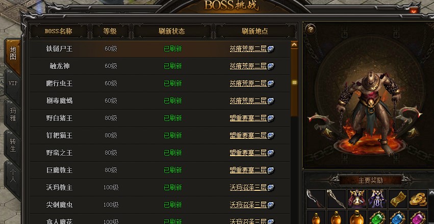 玛雅BOSS,消耗玛雅卷轴即可进入。