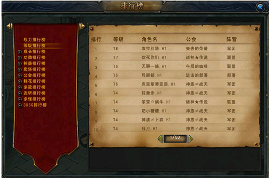 如等级排行榜,玩家间的等级排行还是非常紧凑的。