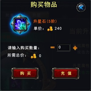 玩家升星需要升星石,升星石分为1级到9级。装备每升10星,就需要下一级的升星石,才能继续升星。