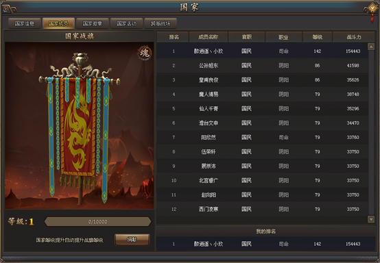 玩家到达一定等级开启国家系统,加入国家后可以参加更多有趣的国家活动,各种豪礼等你来拿