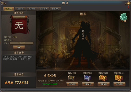 国家面板可以看到当前国家的相应信息,国王通过专属活动-胜者为王来判定