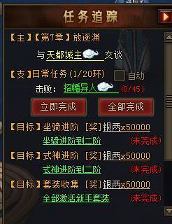 阴阳道日常任务目前分为两种、其一是日常20环任务、其二是国家20环任务,任务奖励也区分两种,当前环奖励和全部环完成奖励,玩家通过鼠标悬停可以查看到当前任务奖励内容,日常任务是玩家角色升级、国家升级的主要途径,丰富经验正在等待勤劳的你~~