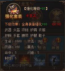 玩家可以通过点击选中指定套装按钮查看套装详情,以及当前额外增加属性效果,下图为强化套装效果