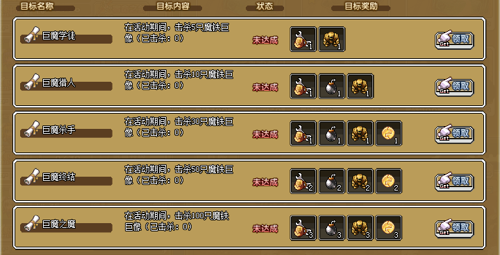 5、击杀巨魔100次,可获得:神力矿工包×3,雷管×3,巨魔雕像×3,挖矿徽章×3