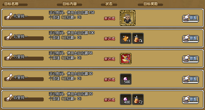 5、活动期间使用血钻招募20个英雄,即可获得:荣誉碎片×400,神力矿工包×2