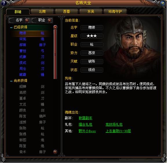 点击左上角的【名将大全】按钮,即可看到所有名将的信息。