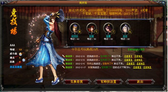 点击“进入竞技场”后,即可打开竞技场面板: