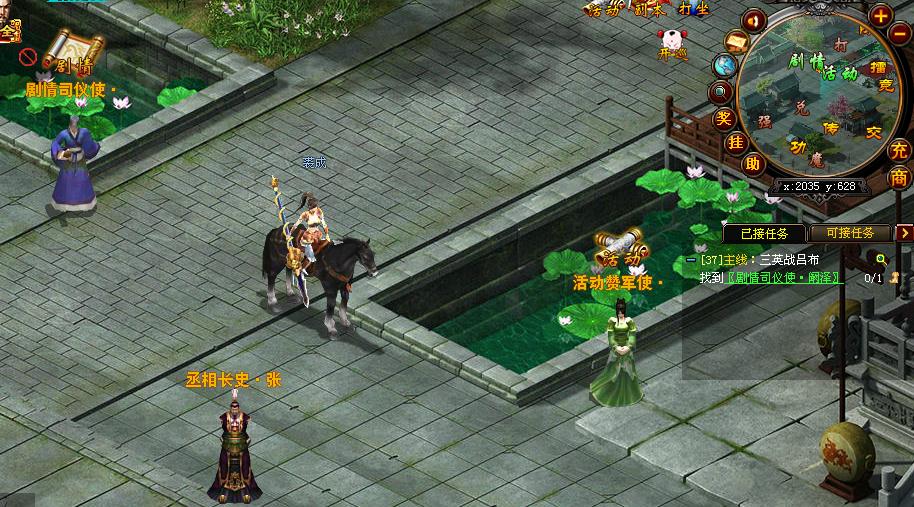 玩家接到战斗任务后,可以在特定的NPC处点击,直接进入战斗模式。剧情管理员处有多个剧情,多个关卡供玩家选择战斗;副本管理员处有副本任务提供玩家操作;同样,活动管理员处一系列的活动供活动参与。