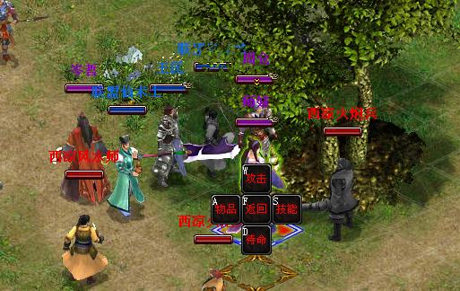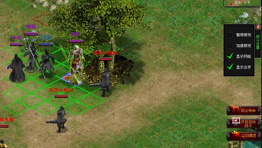 画面右侧为战场设置按钮,分别为待命、挂机、名称、网格、、说明、退出。