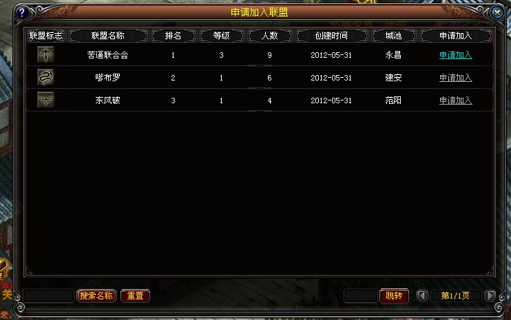 选择想要加入的联盟,点击右边的申请加入即可。联盟会长审批通过后即可加入联盟。