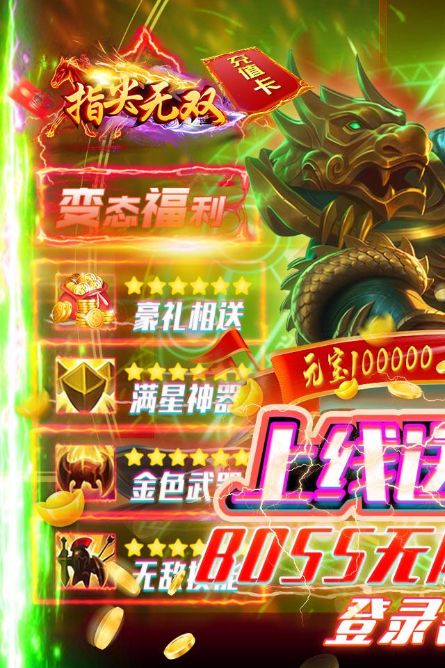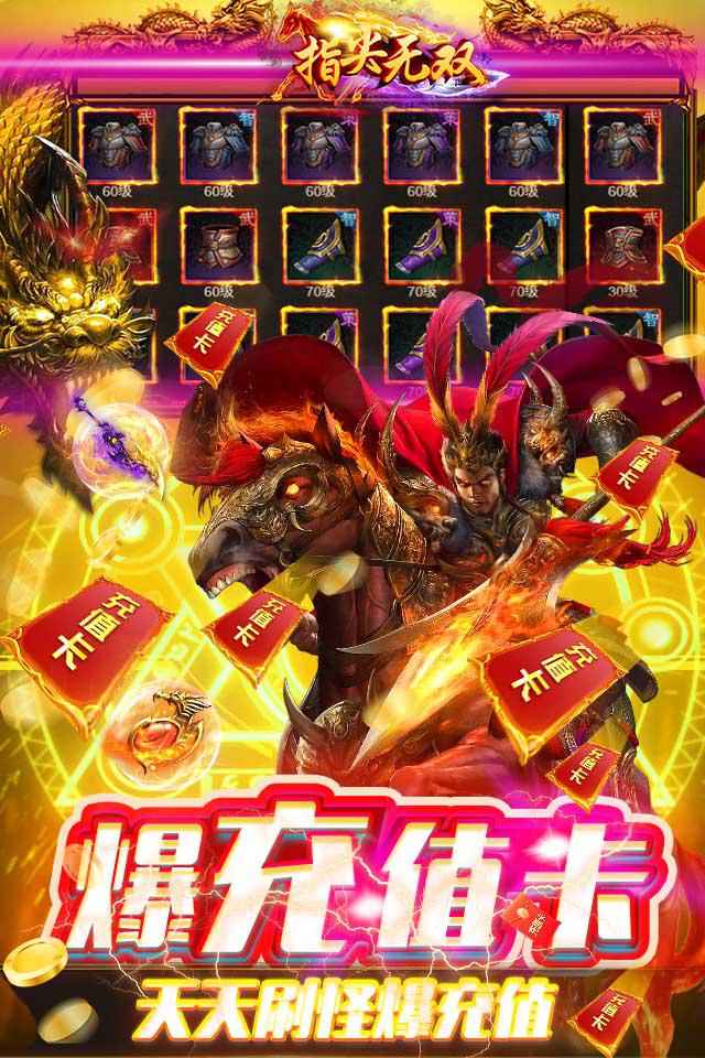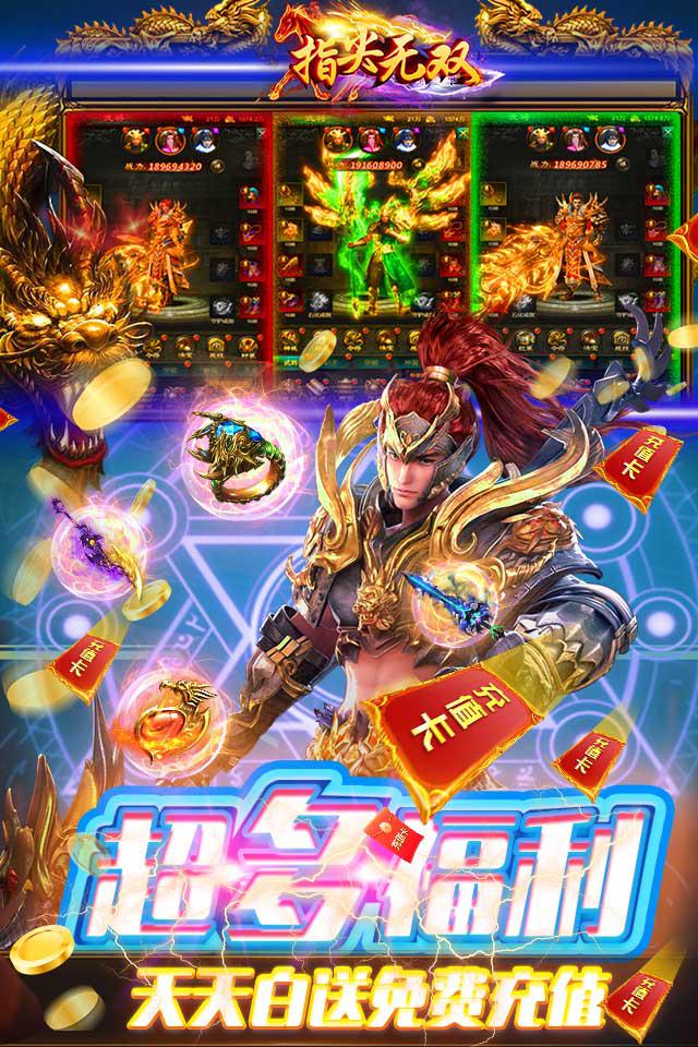 紫霞《指尖无双(无限爆充值)H5》是一款三国题材的RPG类型游戏! 以挂机养成为主题,上线送vip15、金币1000万,元宝10w!挂机打boss无限爆充值,每日登录领取真充卡!简直好玩到爆!不花钱的游戏,就问你刺不刺激!正统挂机三国福利手游,开启全民三国,铸造王朝霸业!