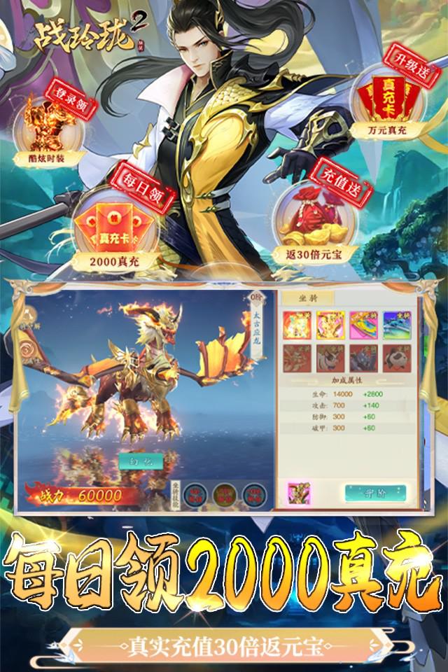 《战玲珑2》是一款以《山海经》为题材的画质精美、玩法创新的大型MMO仙侠手游,传承前作《战玲珑》近乎完美的骑战玩法,使用全新引擎渲染,创新推出战骑合一、五行相克的战斗核心,配置骨相捏脸、自由交易、双世情缘等多样玩法,多维度打造超清、磅礴的仙侠世界,全面突破传统手游画质上限,让玩家沉浸在山海盛宴,成就八荒之巅。