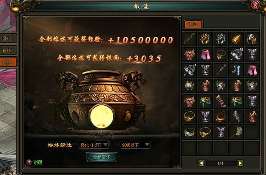 玩家在装备的收集中,存在很多低级的装备,玩家锻造系统中的熔炼切页中,装备装备熔炼成大量经验,并有一定几率获得内甲碎片。