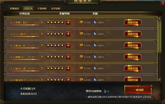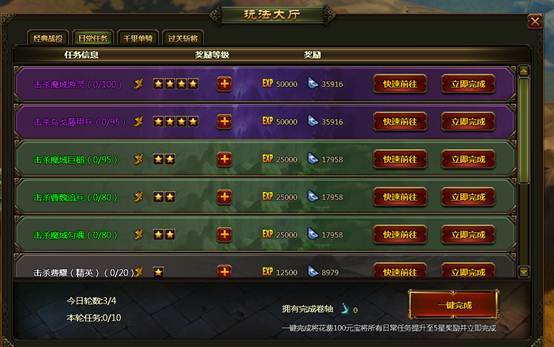 一键完成功能可以将所有日常任务提升至5星奖励并立即完成。