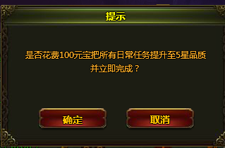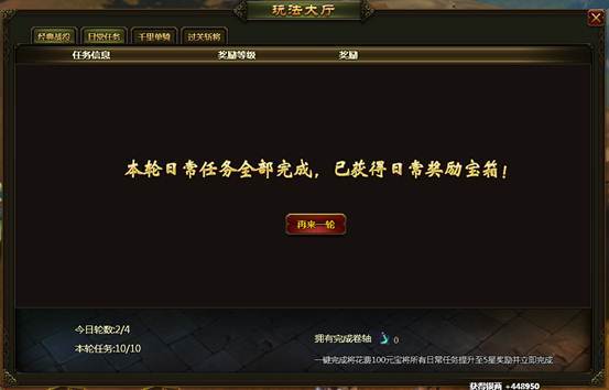 日常任务每天共有4轮,第一轮免费,第2-4轮分别需要花费100/200/300元宝进行。