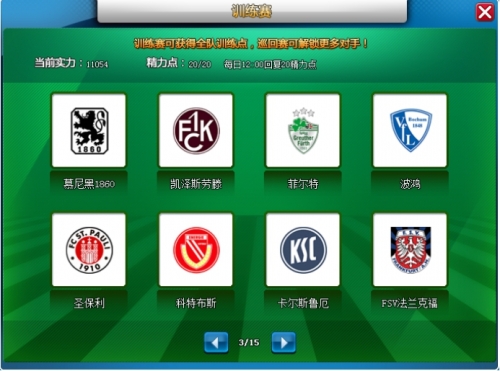 玩家可以通过游戏主界面的“训练赛”图标进入训练赛界面,训练赛是获得训练点以及某些球星卡的主要途径。
