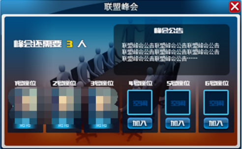 联盟2级时开放联盟峰会,联盟峰会中,每满6名玩家参与峰会,即可获得一定的贡献度奖励,峰会每日参与的次数不限,但是奖励只能获得一次,获得过奖励的玩家也可以帮助其他盟友凑人数哈~