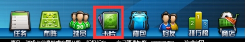 玩家通过系统获得,以及拍卖后从短信界面中领取后的球星卡,都会进入“卡片”这已功能中,点击游戏界面下方的卡片按钮,即可进入该功能