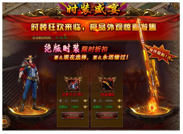 活动内容:新款时装显示出售,玩家购买时装后可获得全新外观和属性增幅,活动结束后绝版。