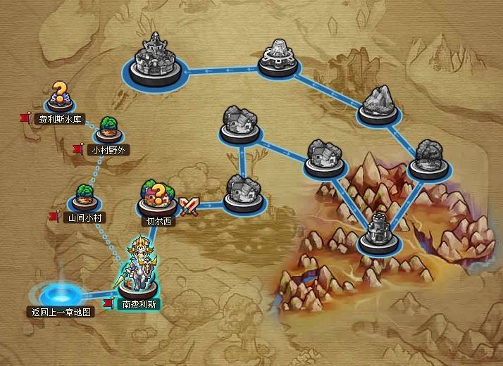 1. 用鼠标点击已经点亮的章节图标或关卡图标,角色即可进入该章节出征地图或者关卡。