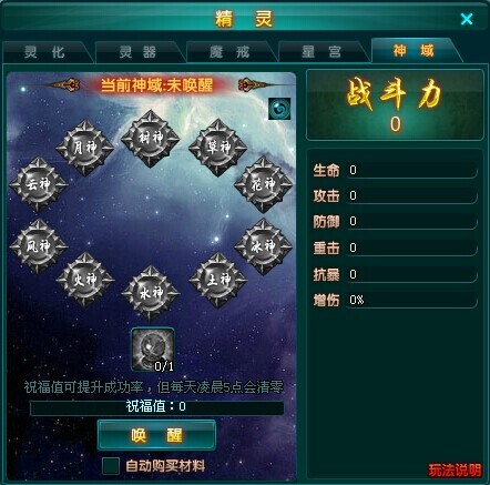 注:①每次唤醒神域均有几率成功,失败则会增加祝福值。祝福值越高,唤醒的成功几率越高。