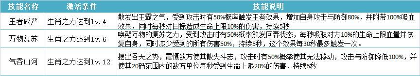 1、修炼生肖之力达到lv.4,即可激活生肖鼠的“王者威严”技能;
