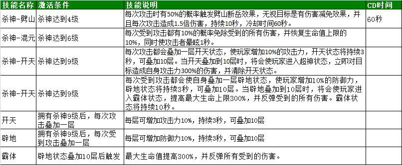3、炼制杀神达到“开天辟地”级别,即可激活技能“杀神-开天辟地”;